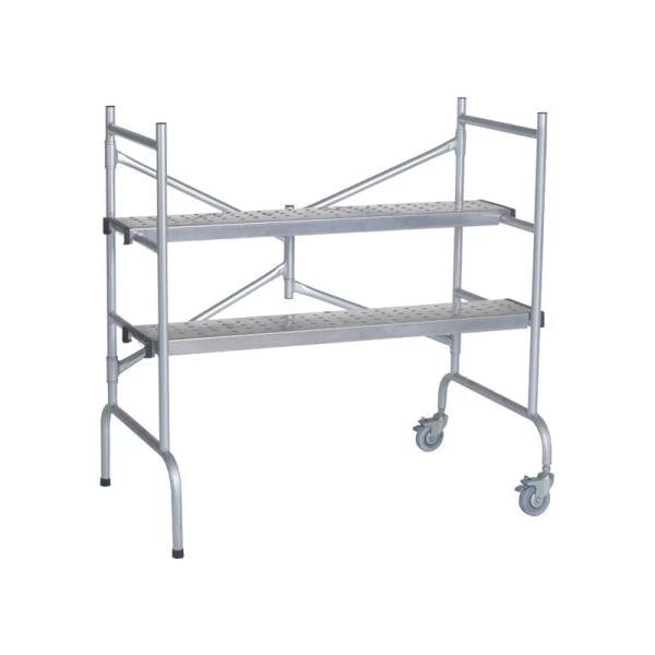 Aluminium vouwstelling voor huis- en tuingebruik. Zeer compact en bovendien lichte stelling die kan worden dichtgevouwen en in geen tijd van opbergstand naar werkstand kan worden omgevormd.