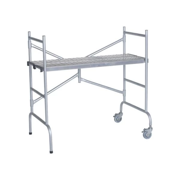 Deze handige vouwsteiger is voorzien van wieltjes met rem, ze kan gemonteerd door een standaarddeur gereden worden. Deze hobbystelling is voorzien van een tweedelig antislipplatform waarbij de delen op verschillende hoogtes geplaatst kunnen worden.