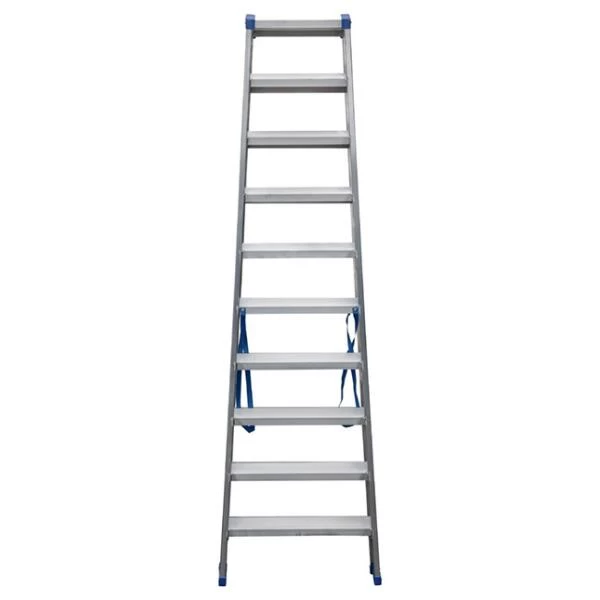 De dubbele aluminium trapladder SPARTA DUO kan langs beide kanten worden gebruikt en is voorzien van gelaste antisliptreden. Door de extra brede treden van 80 mm is deze gemakkelijk en veilig in gebruik. Langs beide zijden van de ladder bevinden zich evenveel treden, met een tussenafstand van 23 cm.