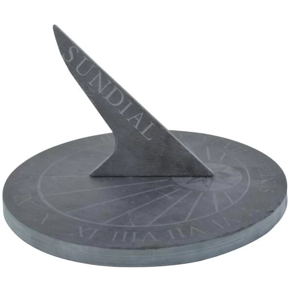 Decoratieve zonnewijzer in leisteen, een fraai en tijdloos natuurproduct. De zonnewijzer geeft de zonnetijd aan, ofwel de echte plaatselijke tijd. Per lengtegraad verschilt de tijd ongeveer 4 minuten. Door de elliptische baan van de aarde rond de zon, vraagt elke zonnewijzer een maandelijks correctie om steeds het juiste uur aan te blijven duiden.