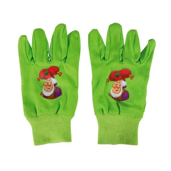 De handschoenen hebben een opvallende groene kleur en een leuke afbeelding van kabouter Plop.