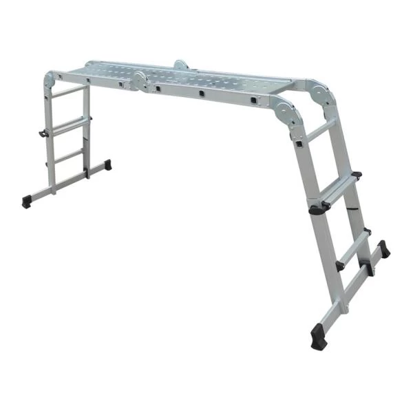 Handige telescopische plooiladder waarvan de 2 uiterste ladderdelen afzonderlijk in- en uit kunnen geschoven worden (26 cm per ladderdeel). Deze multifunctionele ladder kan ook op trappen worden gebruikt en heeft drie standen: hij is bruikbaar in A- stand, als rechte ladder of als werkplatform.